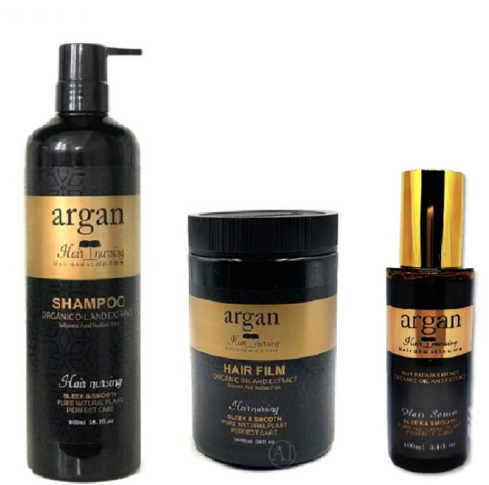پک ۳ عددی شامپو و ماسک و روغن مو آرگان نوار طلایی